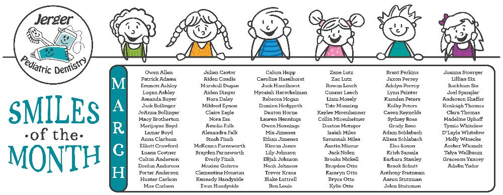 At Jerger Pediatric Dentistry, we love celebrating healthy smiles! Each month, we highlight patients who are dedicated to maintaining healthy teeth and gums. We hope this recognition encourages all our patients to take pride in their oral health and strive to keep their teeth clean and beautiful.